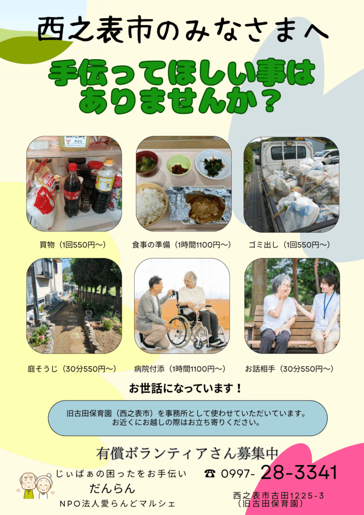 ご家族やご親戚の方からの依頼や相談も可能です。(島内にお住まいの方も、遠方にお住いの方も、柔軟に対応します。まずは、お気軽にお電話「0997-28-3341」で、だんらんにご相談ください)