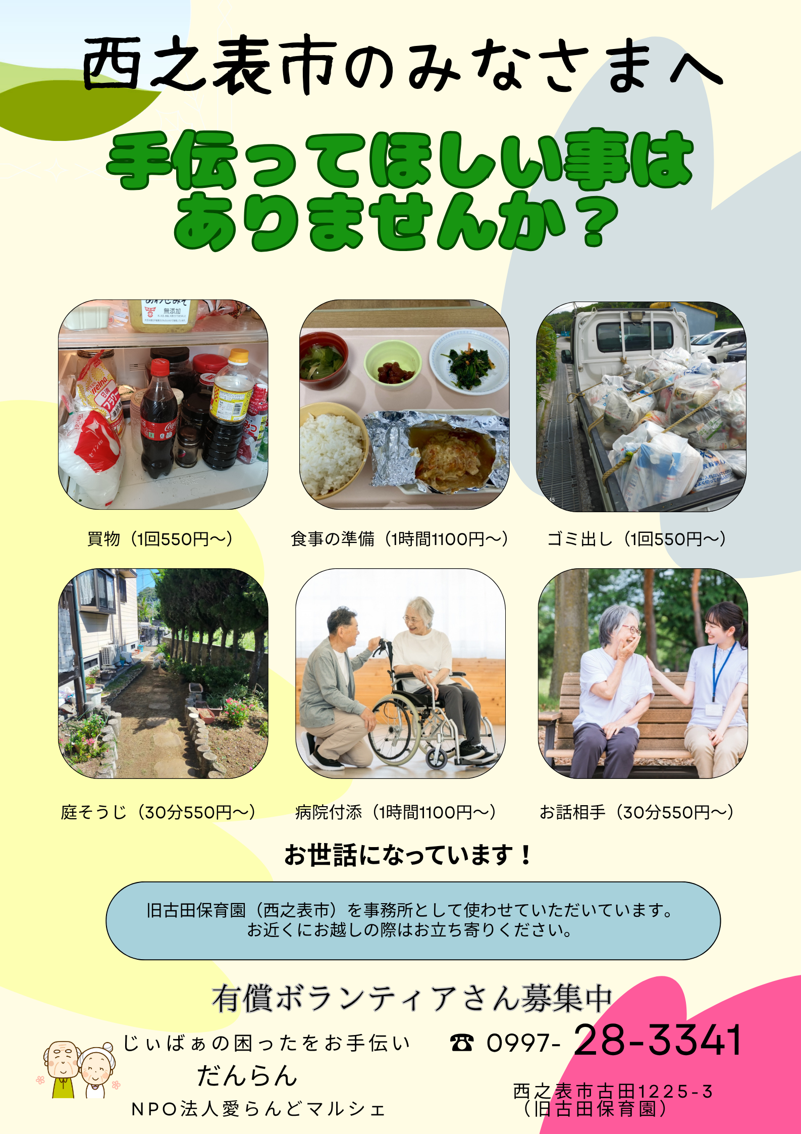 だんらんの活動を一緒にしていただける、有償ボランティアさんを募集しています。